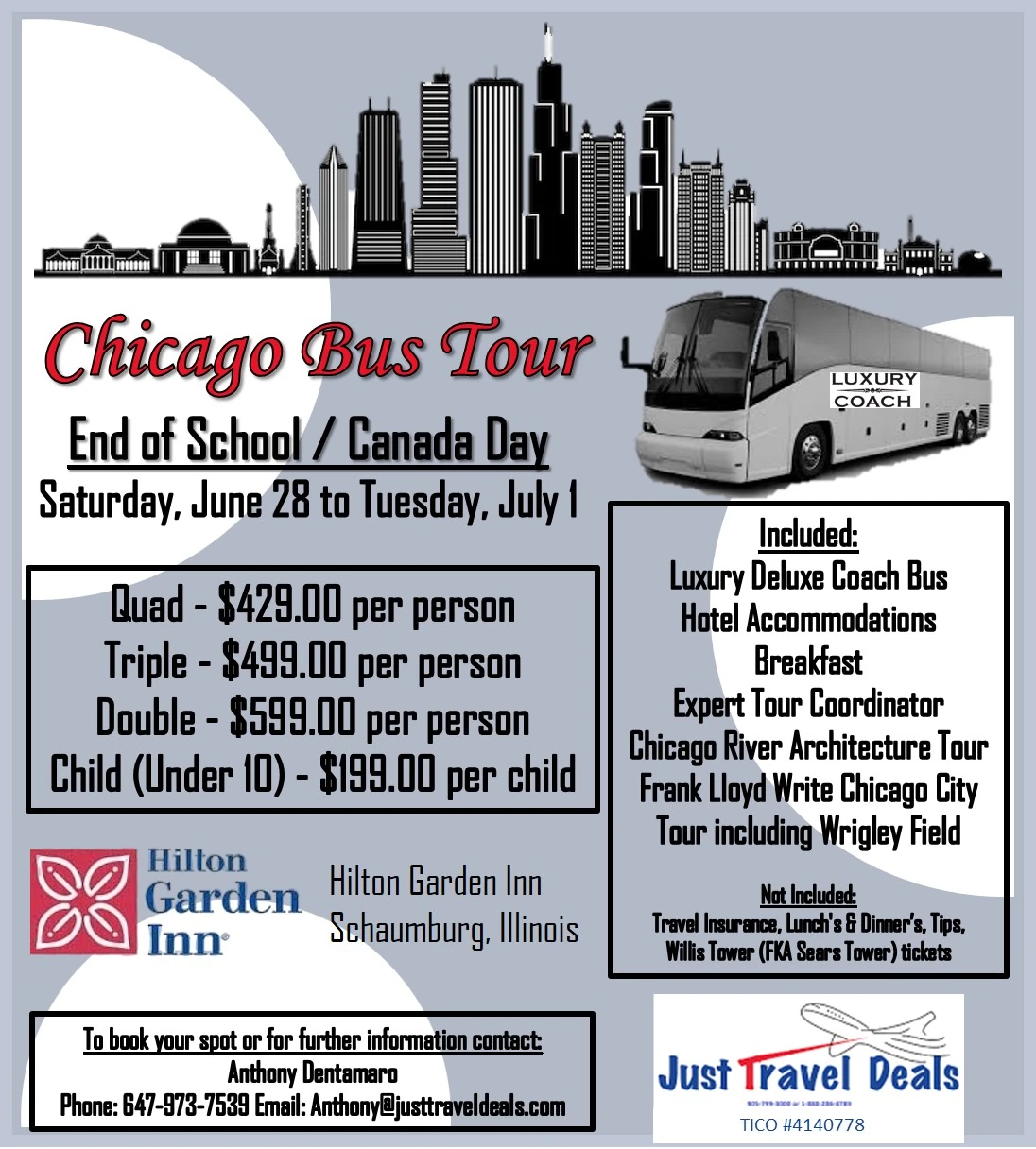 Reservations 647-973-7539 or anthony@justtraveldeals.com