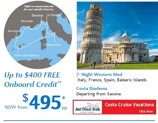 Have the urge to travel this year? Or Not? Consider this. Costa presents the Western Med itineraries as an alternative to the routine skiing or "beaching" winter vacations. With airfares to Europe lower in winter, pleasant touring temperatures, fewer crowds and incredible cruise vacation rates; winter is an ideal time to visit the most exquisite and dreamed of destinations...the ones you see on cable TV travel programs!