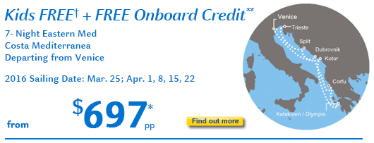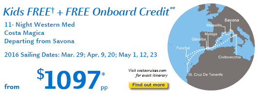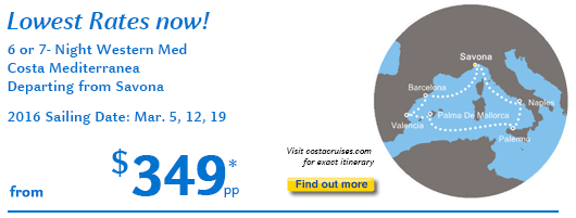 For the best rates on other sailings, see This Week's Top 10 Costa Collection. Take advantage of these extraordinary savings now.