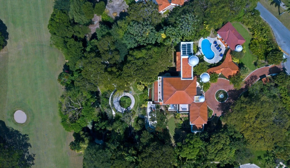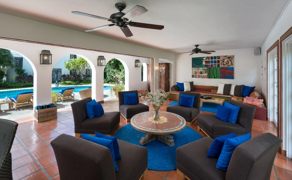 Arise to the antics of green monkeys in the gardens, observe the hummingbirds, sailing ships and flowering trees by day and catch the soul-stirring views of the sunset each evening. The breeze constantly flows through the various courtyards, patios, loggias, balconies, and terraces of this villa that sprawls over two acres on a ridge with sweeping views.