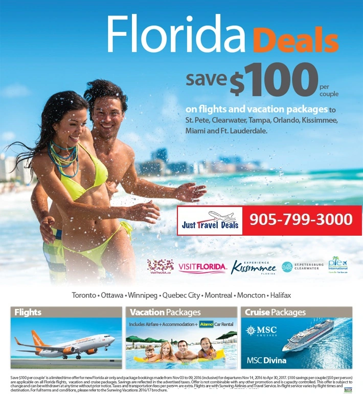 Florida Vacation Deals - Save $100 per couple