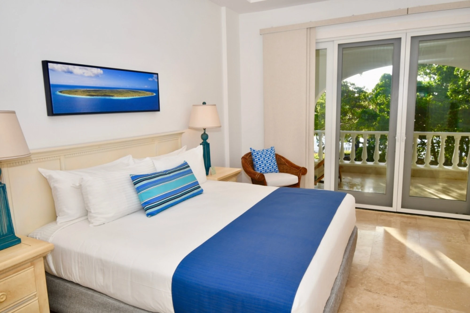 The villa features a full kitchen, large living and dining area, one and one half bathrooms, washer and dryer. The upstairs loft bedroom is fitted with a king size bed and opens onto a spacious balcony with lovely views of the Bella Fontana plaza and Harbour Village Marina.