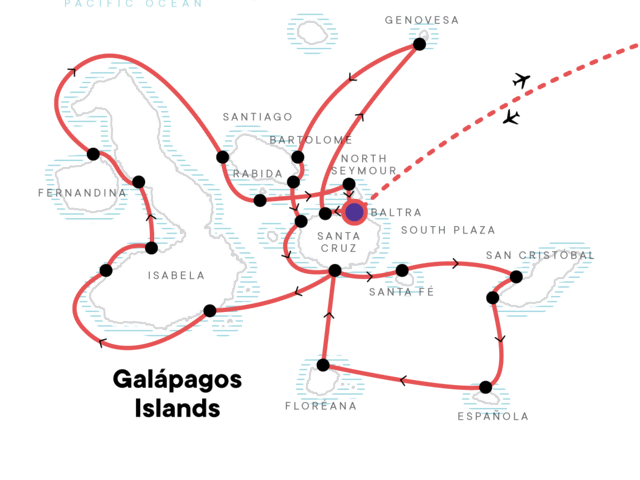 Flights to either of the airports in the Galapagos leave early in the morning on Day 2 and get you into the islands in the early afternoon. Flights back to the mainland depart between 10:00am and 1:30pm arriving in the early evening.