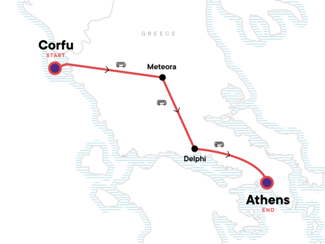 This tour includes some long travel days, but we believe those hours of travel are more than worth it for the reward of seeing so much of this breathtaking region in a short space of time, so unfold your map and get ready to enjoy some beautiful landscapes between Corfu and Athens.