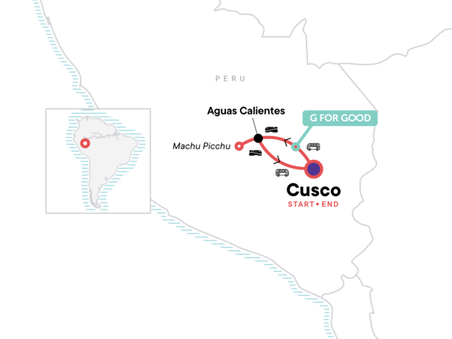 Your G for Good Moment: Parwa Community Restaurant the Sacred Valley, Lamay. Arrival and departure transfers. Train to Aguas Calientes. Guided tour of Machu Picchu. All transport between destinations and to/from included activities.