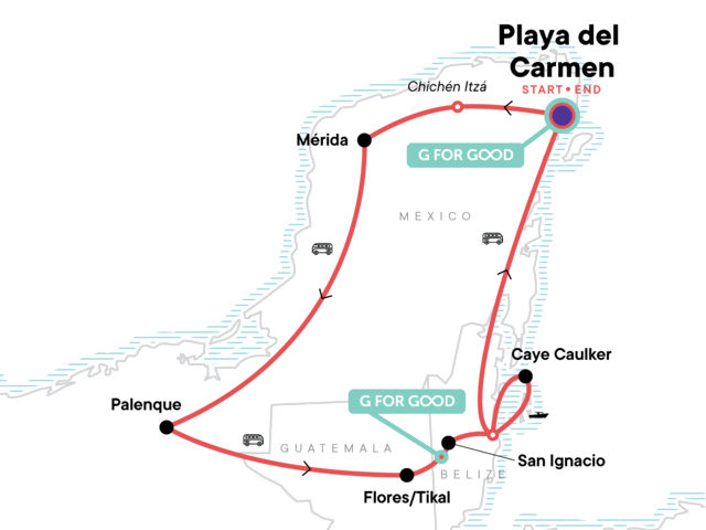 Your Discover Moment: Playa del Carmen. Chichén Itzá guided tour. Mérida orientation walk. Palenque guided tour. Tikal guided tour. All transport between destinations and to/from included activities.