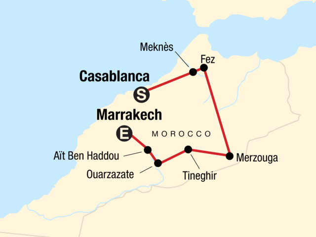 Discover the magical, twisting lanes of Aït Ben Haddou, an ancient fortified village and UNESCO World Heritage site, then continue along high mountain roads to Marrakech. Take some free time to wander this legendary city—a melting pot of Amazigh, West African, Mediterranenan, and Arab influences—and venture off the beaten path into hidden neighborhoods and artisan quarters.