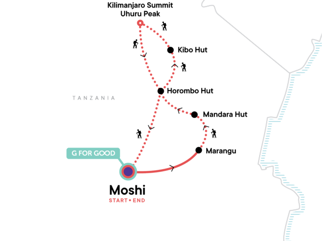 On arrival no transfers are included. Please make your way to the joining hotel. Kilimanjaro International airport is approximately 40km, or 40 minutes, from Moshi. Taxis are available to transfer you to Moshi, and cost approximately USD 50 per car. If you arriving in Moshi from Nairobi, Kenya, there is a public shuttle bus that leaves Nairobi at 8:00am daily to Moshi. It is a direct bus via Arusha, and with border formalities, and a break (and potentially a change of vehicles) in Arusha, the trip is approximately 8 hours. There are a number of local companies that offer this service, and this can be organized locally the morning of. In addition, for your convenience, you may pre-reserve a seat on our partner shuttle service through G Adventures.