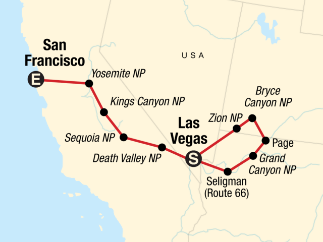 View world-famous canyons and stone formations, Hike through several national parks, View the giant Sequoias up close, Observe the stars from conservatories, Tour the city of San Francisco, Connect with Navajo people and their culture in Antelope Canyon