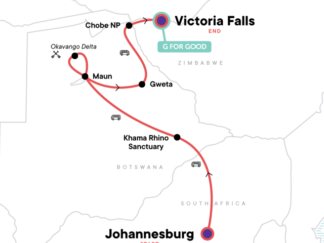 Now's the time to explore Africa on your terms with this tour that's affordable for young travellers. If you think eight days isn't enough to see Southern Africa, you're right. Kinda. We did our very best with this compact, action-packed itinerary that lets you soak up the wildlife, vibrant colours, and scenery of Zimbabwe, Botswana, and South Africa with wildlife walks and plenty of options for safari drives. Your rugged Lando (overland adventure vehicle) will get you to the sites safely and camping lets you to fall asleep to the sounds of the wild underneath big African skies. Actually, maybe eight days is enough.