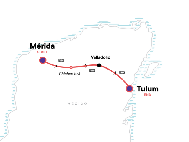 Your Welcome Moment: Welcome Moment - Meet Your CEO and Group. Excursion from Mérida to cycle between and swim in cenotes. Guided tour of Chichen Itzá and Tulum ruins. Dinner inside a cenote near Valladolid. Beach time at Tulum. All transport between destinations and to/from included activities.