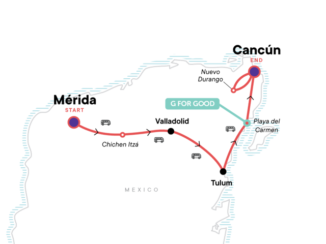 Your Foodie Moment: Yucatecan Community Lunch Experience and Cenote Swim, Cancún. Excursion from Mérida to cycle between and swim in cenotes. Guided tour of Chichen Itzá and Tulum ruins. Dinner inside a cenote near Valladolid. Beach time at Tulum and Cancún. Visit to an insect museum. Beach time at Cancún. All transport between destinations and to/from included activities.