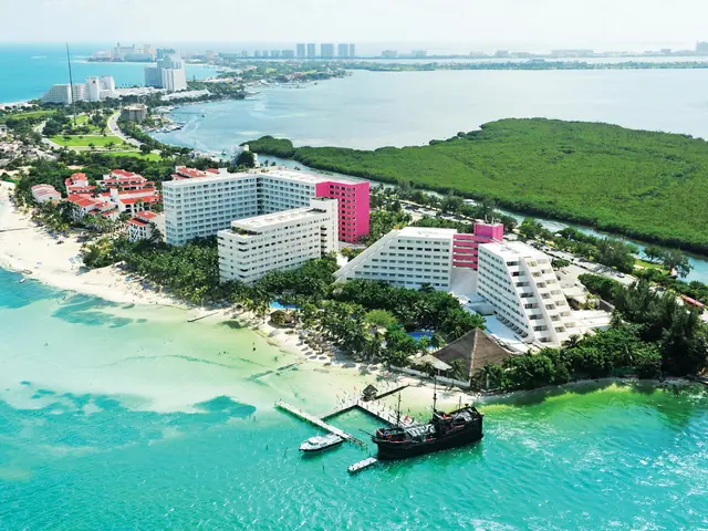 Punta Cana is part of the newly created Punta Cana-Bávaro-Veron-Macao municipal district in La Altagracia, the easternmost province of the Dominican Republic. The area is best known for its beaches and balnearios, which face both the Caribbean and Atlantic, and it has been a popular tourist destination since the 1970s. The Punta Cana area has an estimated population of 100,000 with a growth rate of 6%. To the north, it borders the village and beach of Cabeza de Toro, and then the Bávaro and El Cortecito beaches. The nearest city, the 500-year-old capital of the Province Higüey, is 45 kilometres (28 mi) away, and it takes about an hour to drive there. Europeans, particularly Spanish hotel chains, own all but two of the 50+ megaresorts of the Punta Cana tourism destination.