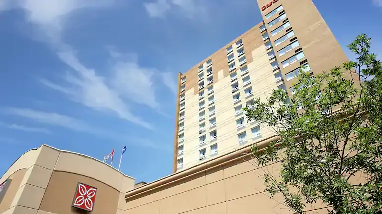 We're next to Midtown Plaza and the TCU Place arts and convention center. The South Saskatchewan River is five blocks away, and We're 10 minutes from the airport. We offer heated underground parking across the street. Our Steps Lounge serves dinner with room service, and the 24-hour Pavilion Pantry offers drinks and snacks.