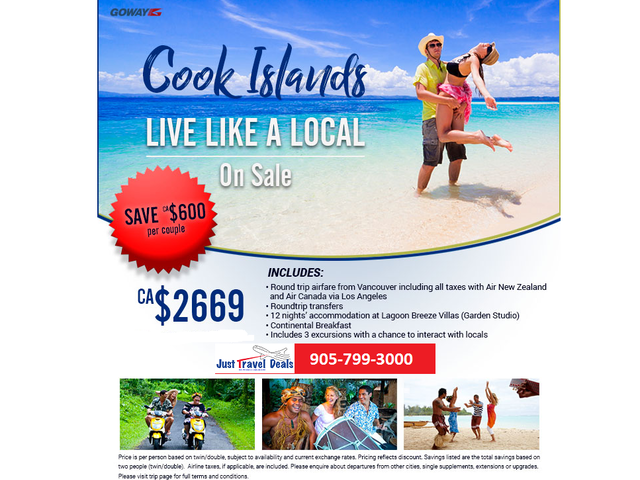 experiences! Ideas on sale include Asia, New Zealand, Australia and several tropical Pacific islands, such as Tahiti. Vacationers can snorkel on the famous Great Barrier Reef, relax in the pristine Cooks Islands, or take an enchanting river cruise in Myanmar. All of the experiences below include international airfare from North America, except the Road to Mandalay cruise.