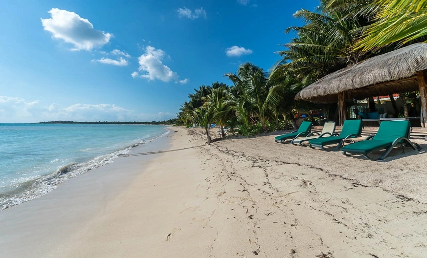 While numerous sun lounges and a beach palapa give you an opportunity to relax with a bottle of chilled “cerveza” and admire the aqua-blue waters of Soliman Bay.