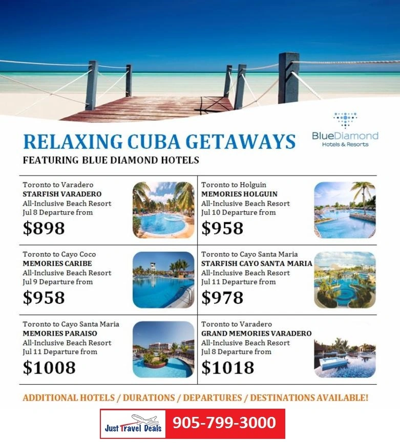 Relax this Summer in CUBA at a Blue Diamond Hotel! Last Minute Vacations