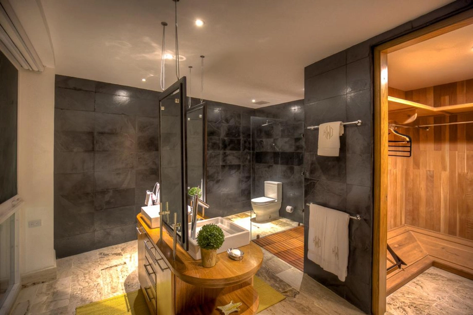 All of the bedrooms include air conditioning, a private bathroom and walk-in closet. The villa has a fully equipped kitchen, plasma TV in the common area, extensive living room terrace & dining room.