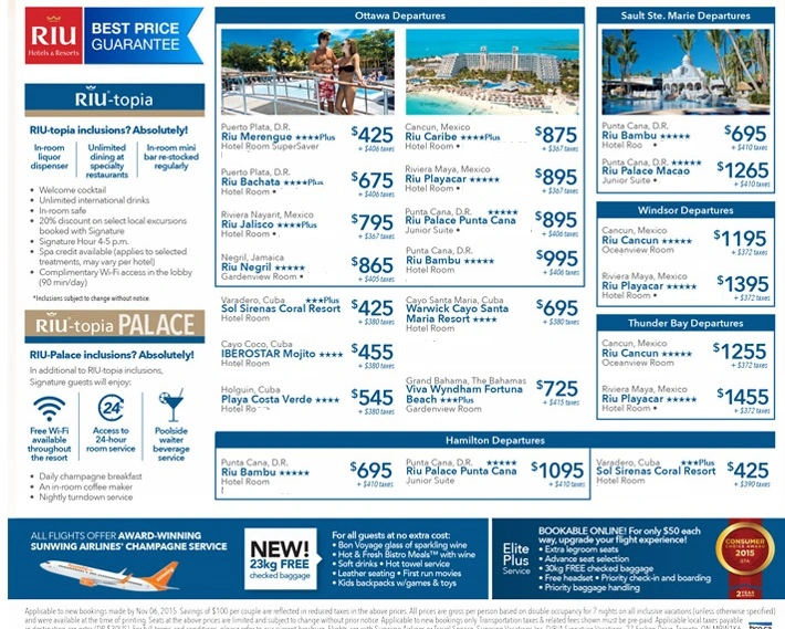 Save an additional $100 per couple on all RIU vacation packages - Ontario departures