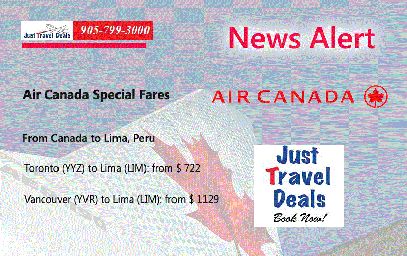 Special Fares Alert Air Canada Flights to Lima, Peru. Vancouver Flights to Lima, Air Canada Cheap Tickets, Toronto Cheap Flights to Lima