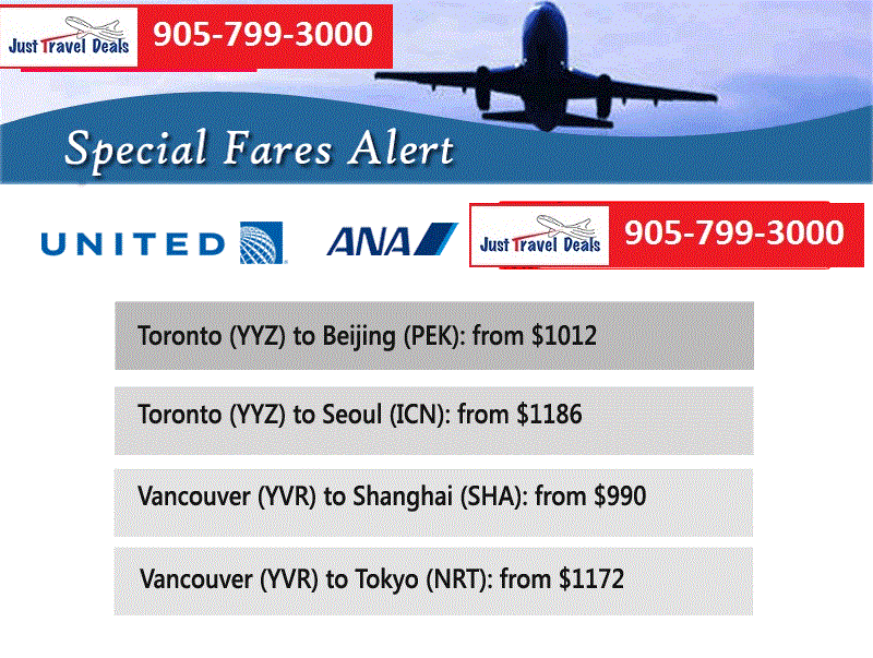 Special Fares Alert United Airlines to Asia. Beijing Cheap Tickets, Seoul Flights, Shanghai Discount Flights, Tokyo Fares