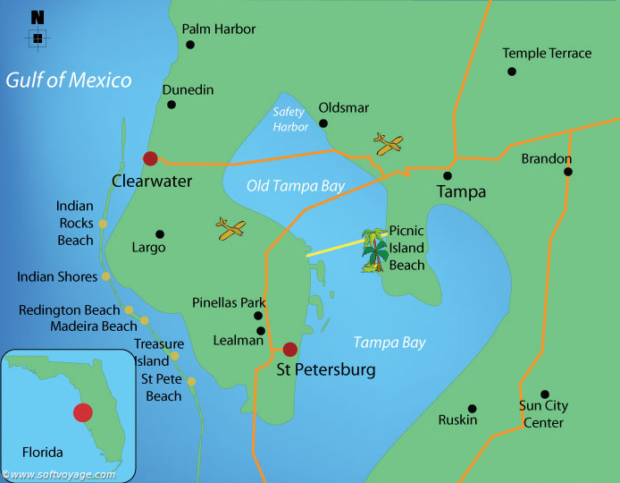 St. Petersburg's is a popular tourist, and retirement destination. And it’s no wonder why it has been nicknamed "The Sunshine City" with an average of some 360 days of sunshine each year. There are many wonderful museums and attractions here, and the waterfront downtown is one of Florida's most pleasant. The nearby beaches skirting the narrow barrier islands run for some 40 km between St Pete Beach and Clearwater Beach. With water on three sides of the city, St Petersburg is a superb location for fishing, sailing, and wandering beaches.