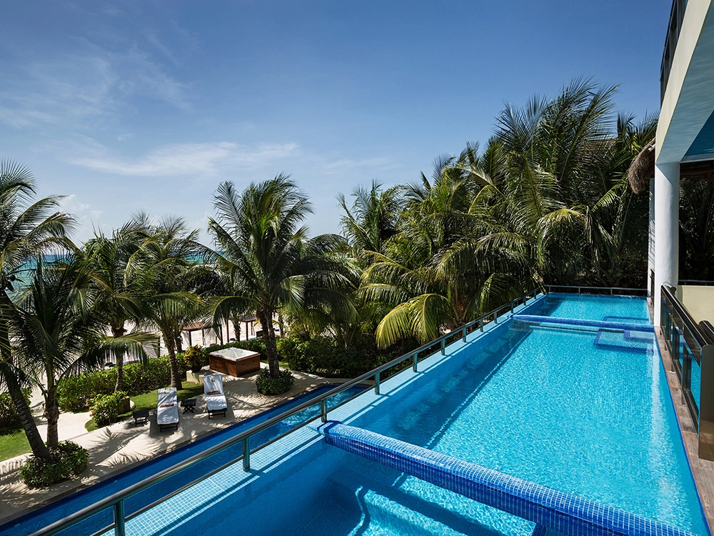 Lounge by the poolside or take a dip in the Jacuzzi. Take in the views of world-renowned Maroma Beach from the second story infinity pool. Enjoy your favorite cocktail on a king-sized beach day bed right in your backyard.
