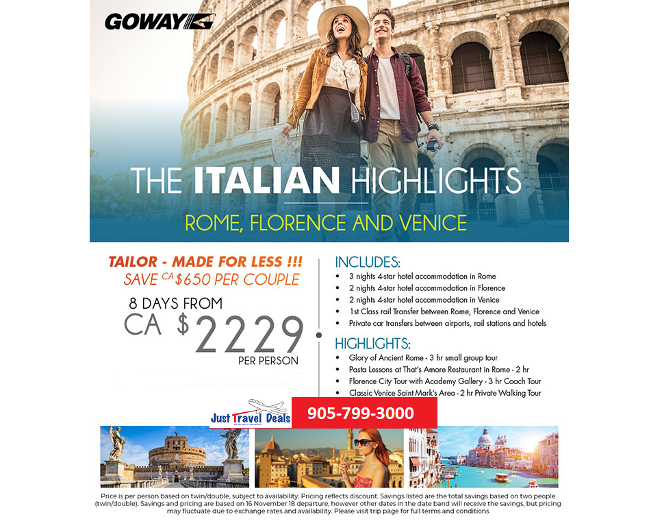 Reservations Call JustTravelDeals @ 905-799-3000 or info@justtraveldeals.ca
